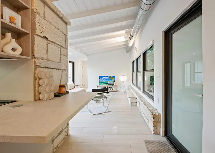 Os hóspedes deste vila têm acesso a uma mesa de trabalho, equipamentos para café/chá e uma televisão de ecrã plano com canais por satélite, bem como a cozinha totalmente equipada. Coconut Grove Mid-Century Jungle Oasis Vila é composto por 2 quartos. A vila é composta por 1 casas de banho.